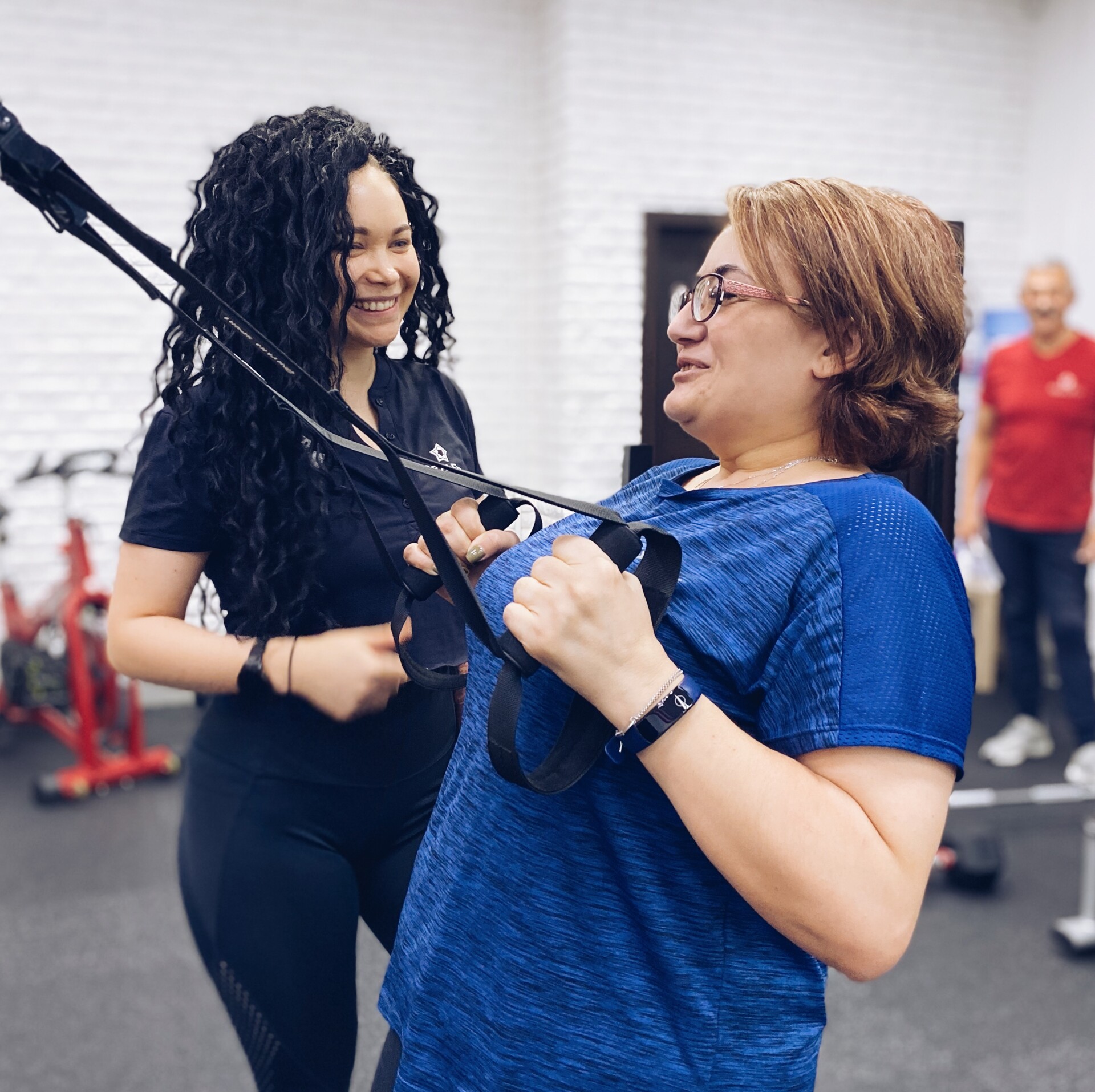 Тренер проводит Вам персональную тренировку, подбирая упражнения и нагрузку с учетом полученных данных.